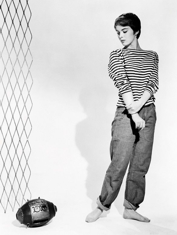 A while ago I made a moodboard for the capsule wardrobe I wanted to make, and photos of Jean Seberg kept coming up. In particular, these ones where she’s wearing jeans and a Breton tee…