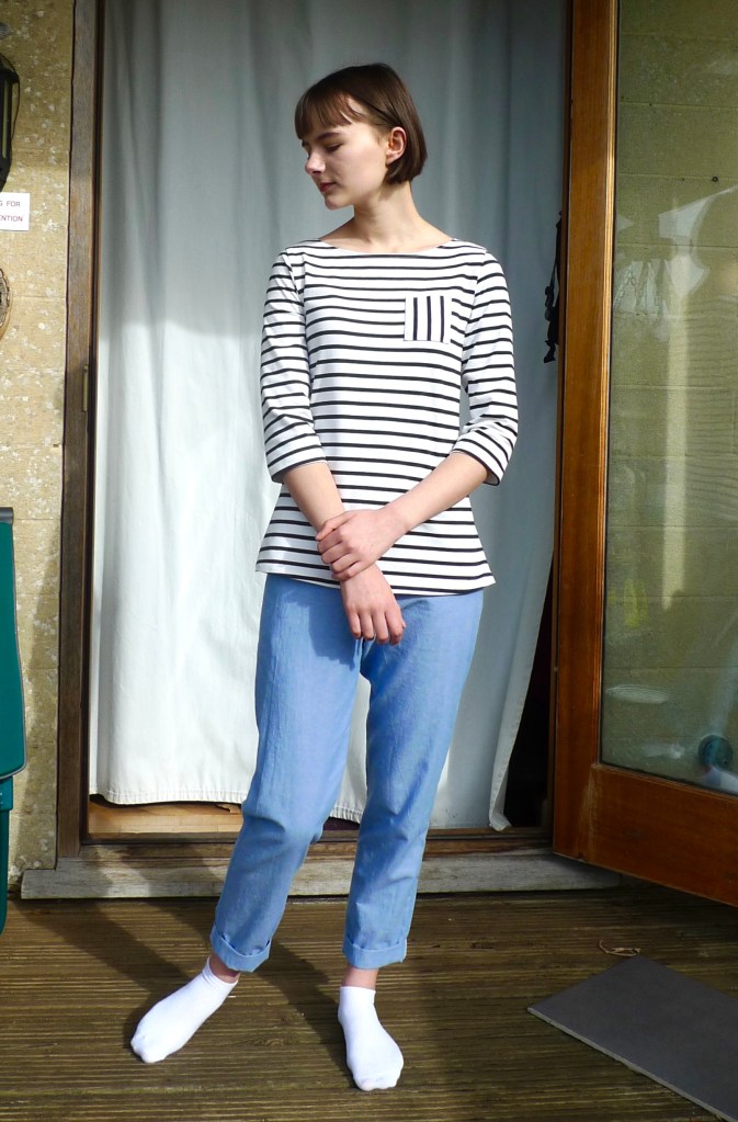 So, I decided to make a pair of ‘fake’ jeans. I settled on the Tilly and the Buttons ‘Marigold’ trousers, as they have an elastic waist to solve my problem of jeans falling down, and they’re designed to be made in lightweight fabrics such as -you guessed it- chambray. The denim-haters best friend!