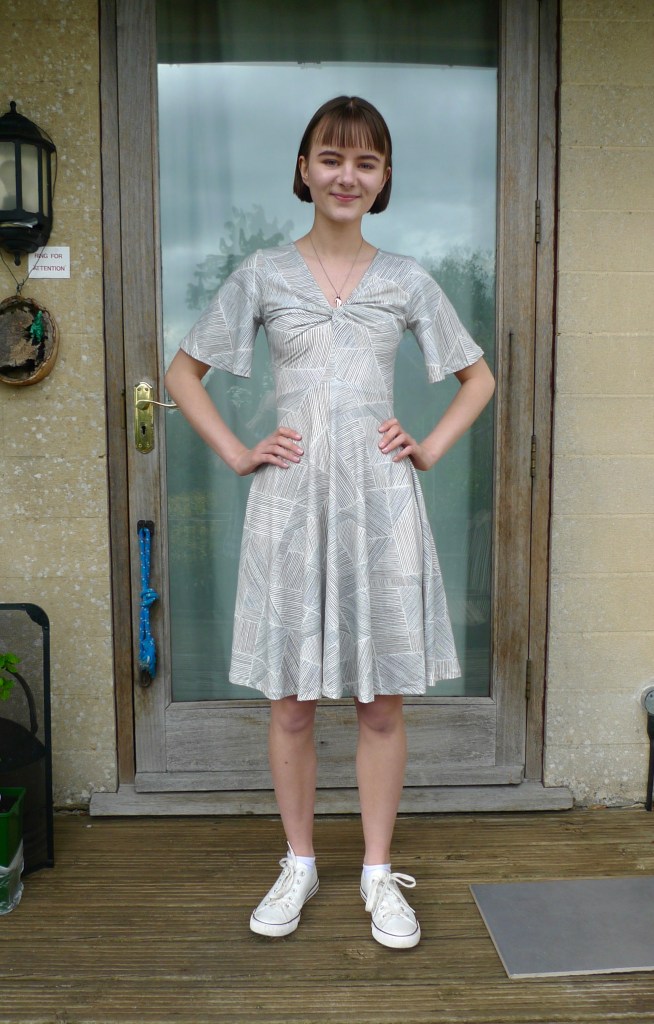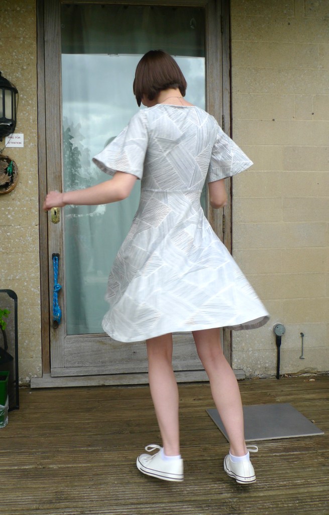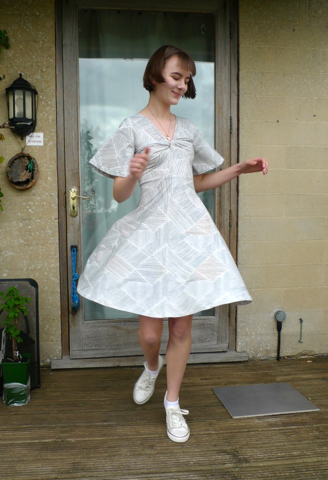What a delightfully pretty dress. It looks as if it fits really well and is comfortable to wear. I love the full skirt. Another success – well done!