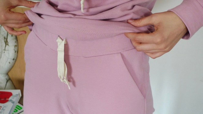 I made a size 1 in the hoodie and a size 2 in the joggers, as I normally grade up a size at the hips with Tilly’s patterns. I’m especially pleased with the fit of the hoodie, as it’s got that perfect not-too-tight, not-too-loose feel. Like, I can wear it over a T shirt, but it doesn’t swamp me.