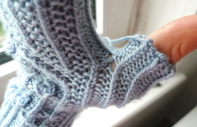 This isn’t a mistake as such, just something I found irritating. Similar to the top of the gusset on socks, when I picked up some stitches at the start of the thumb, it looked really messy and I had to get out my matching thread again.