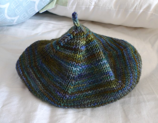 I have very little experience with blocking, but this beret showed me what a difference it can make… here it is pre-blocking (I think it looked like a hat for a pixie!)