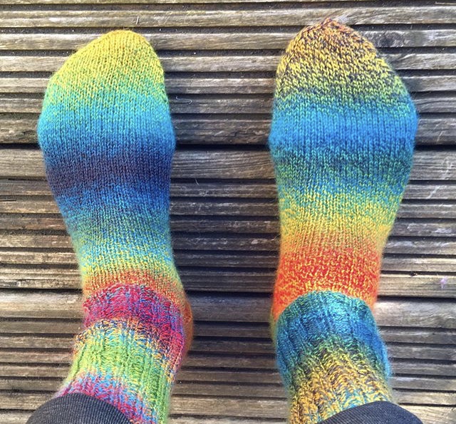 Because I wanted my socks to be extra thick, I used Malabrigo Rios (an aran weight yarn) with 2.75mm needles. I’m really happy with the sturdy fabric this created. It does make them stiffer and less stretchy than normal socks, but I don’t mind that at all.