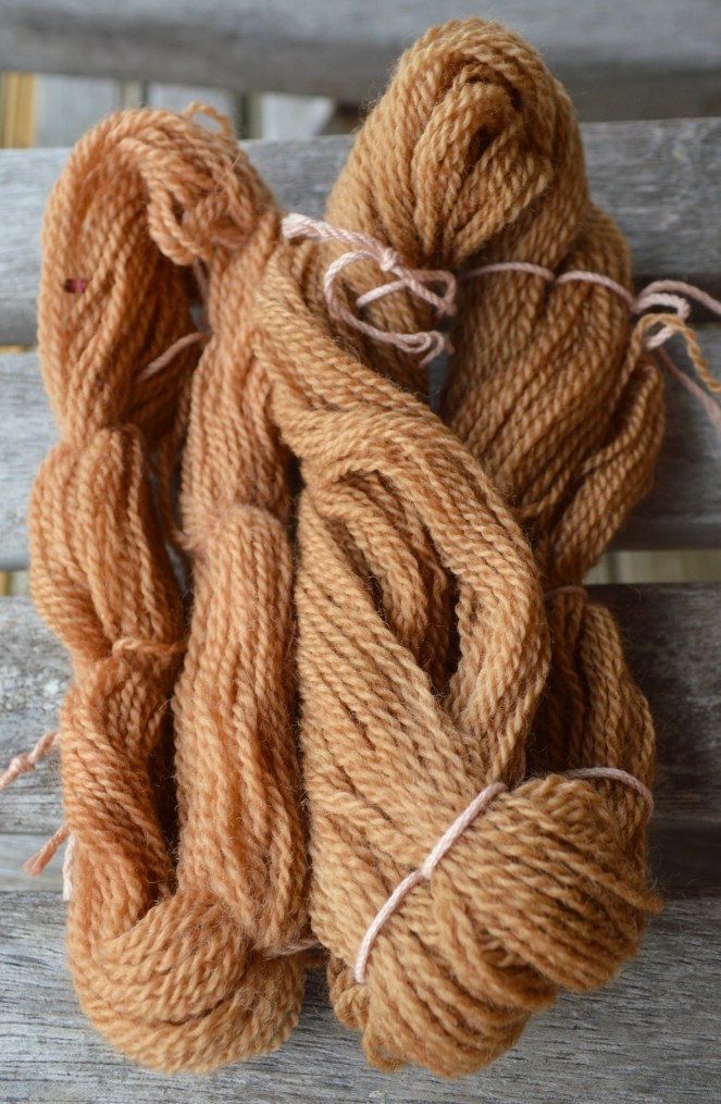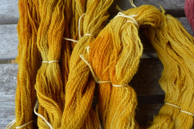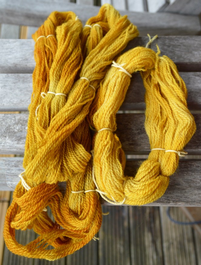 Weld is my favourite one because of the subtle colour variations in it. I deliberately tied the string tighter around the skein in order to produce this.