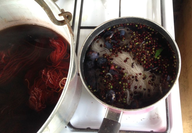 I won’t go through how we prepared each of the dyes as they were all different. Plus, we were only in charge of a couple each, so many of them I didn’t make myself. Basically, some of them had to be pre-soaked, and pretty much all of them had to be cooked for a bit before use so the colour would start to be released.