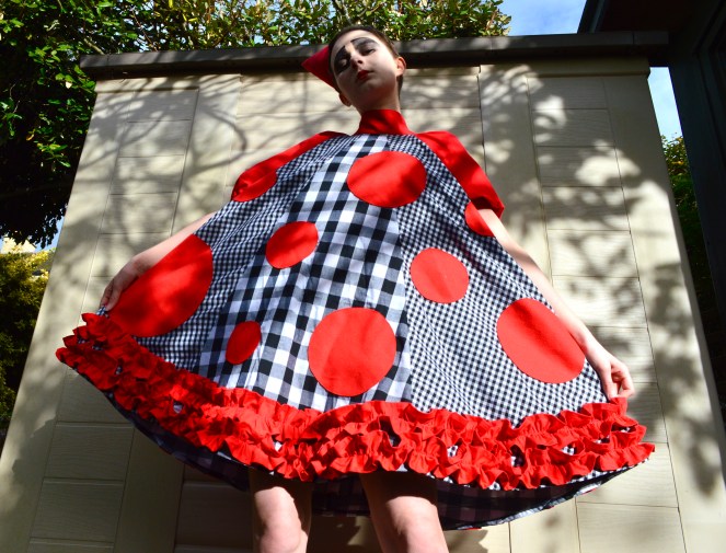 This is a dress I drafted and made as part of a school project last year. The theme was ‘spots, stripes and checks’, and I wanted to put a more costumey spin on it, so I designed this crazy clown dress.